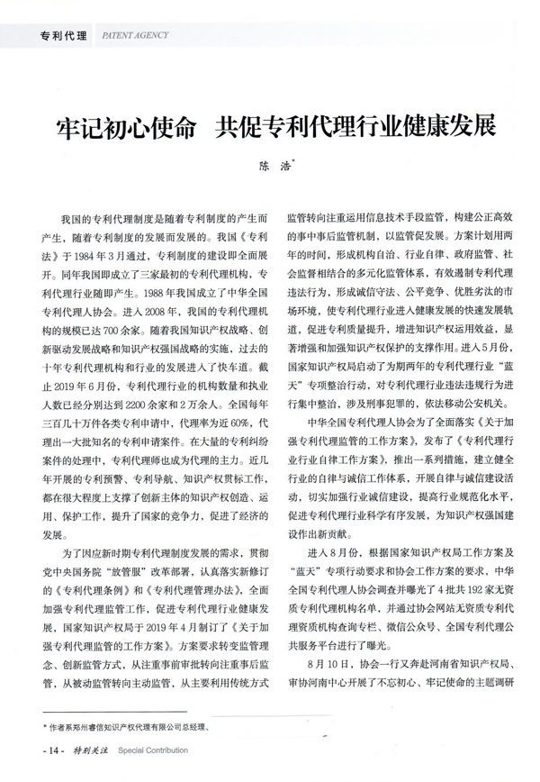牢記初心使命,共促專利代理行業健康發展